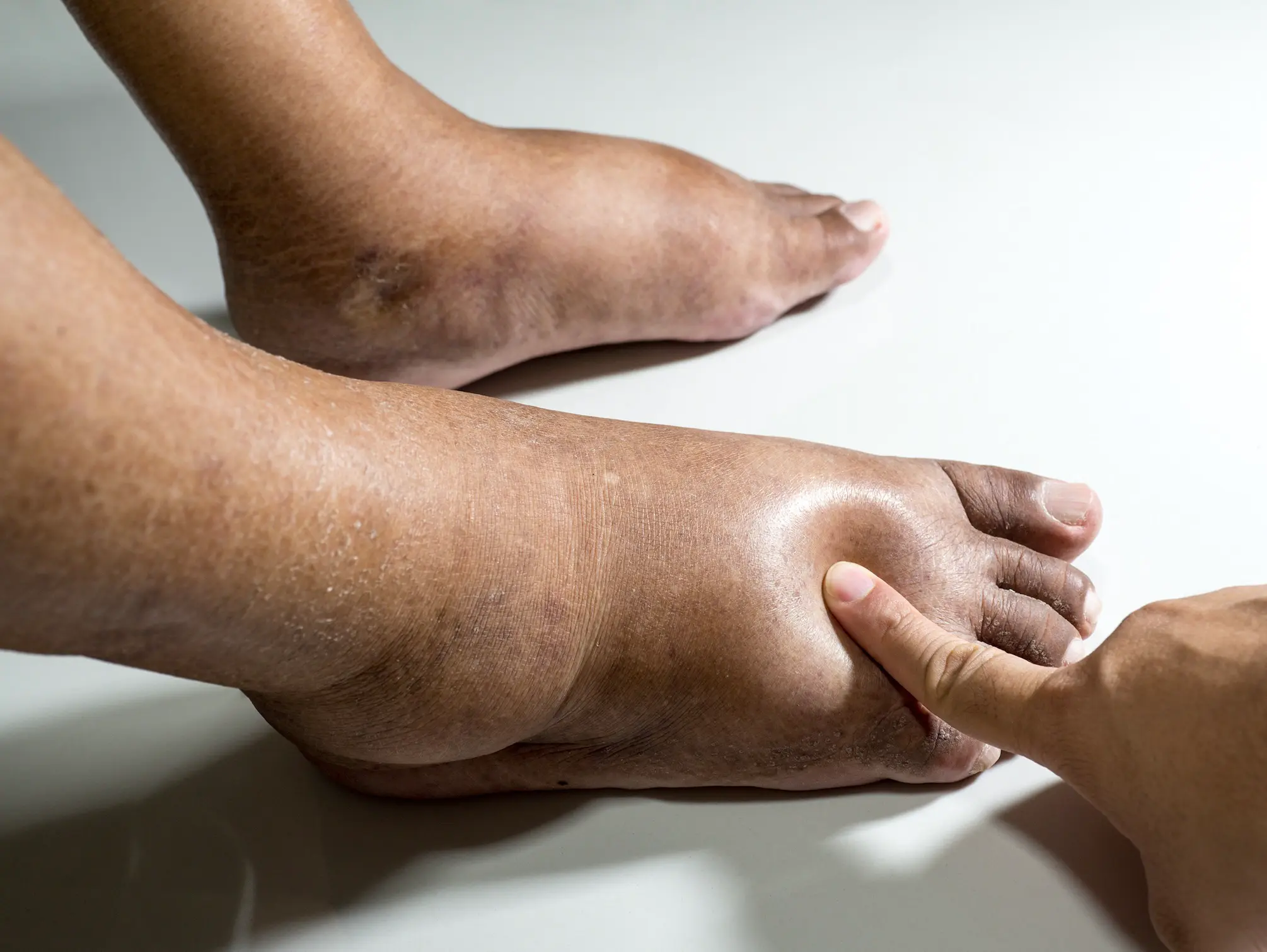 Les blessures peuvent être plus fréquentes et plus graves chez les diabétiques. Lorsque la personne se blesse, la plaie aura tendance à s'aggraver parce que la cicatrisation est compromise. Si on ne surveille pas ses pieds et si on ne se soigne pas, l'évolution est rapide vers ce qu'on appelle une gangrène. Cette dernière est responsable des amputations, et c'est la particularité du "pied diabétique" qui peut évoluer rapidement vers une infirmité. En un mot : on regarde ses pieds et on ne prend pas les petites plaies à la légère.