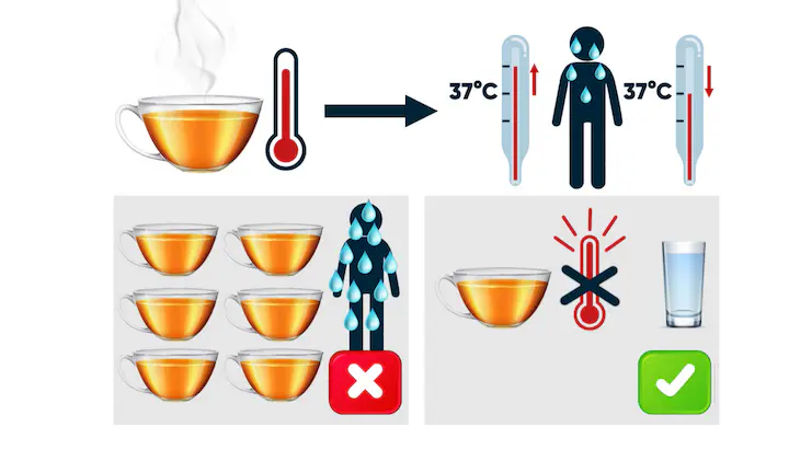 Si vous buvez très chaud, la température du corps augmente encore un peu plus. Pour revenir à ses 37 °C préférés, l'organisme va alors se mettre à transpirer.