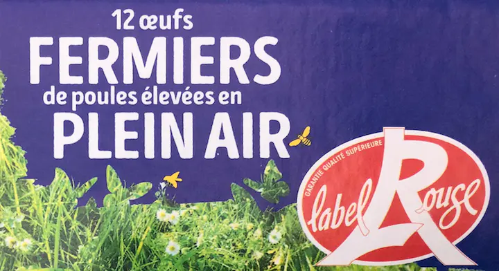 L’œuf des Mauges ou Parole d’éleveurs ont un packaging très bien fait parce que vous aurez l’impression d’acheter des œufs d’un petit producteur régional avec son nom et sa photo, des mentions "Céréales 100% françaises ", "Exploitations familiales ", "Oeufs frais datés du jour de ponte" … Vous sentez alors la confiance mais en fait, ce sont des n°3 et les pauvres gallinacées n’ont jamais vu le moindre brin d’herbe !