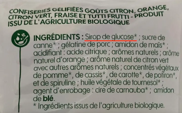 Pour les CarenSac et Carambar classiques, les arômes sont artificiels. On y retrouve en plus un émulsifiant qu’il faut traquer, le E471 qui augmente la perméabilité intestinale.