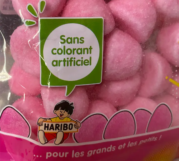Méfiez-vous de la mention "sans colorant artificiel" qui ne garantit absolument pas que les arômes ne le soient pas . Dans les Tagada par exemple, il s’agit bien d’un arôme synthétique, c’est-à-dire, de toutes pièces, créé par l’Homme.
