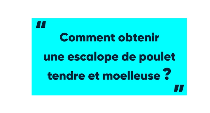 La viande cuit rapidement et elle reste moelleuse. Il faut colorer l’escalope de poulet dans de la matière grasse, à feu vif, puis baisser le feu et couvrir pour cuire doucement à cœur, dans sa vapeur.