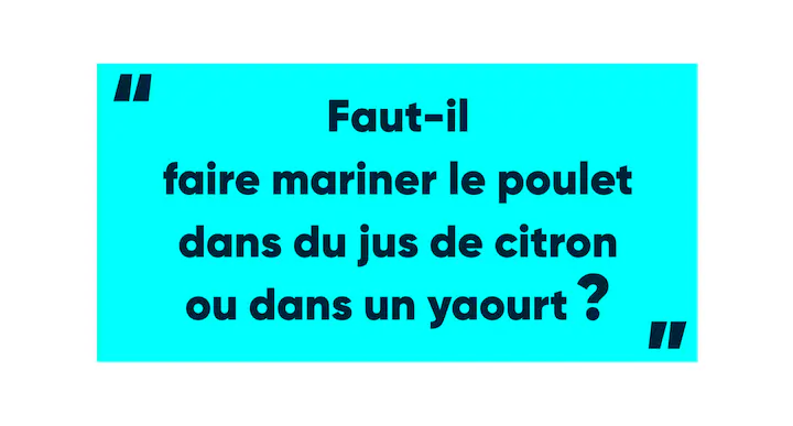 Deuxième possibilité, mariner le poulet avant sa cuisson pour l’attendrir.