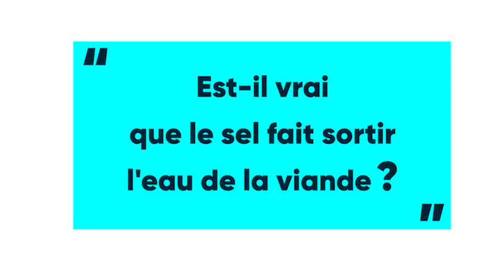 Si vous salez et cuisez immédiatement la viande, il n'y a aucun risque , c'est une fausse astuce . Si par contre vous salez, et que vous attendez plusieurs heures, le sel peut effectivement prendre l’eau de la viande pour se dissoudre.