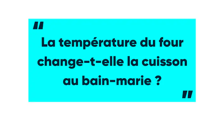Il est très important de garder une température constante car il ne faut pas avoir de variations de température, qui pourraient provoquer une sur-coagulation. La température doit monter doucement sans jamais dépasser ce palier fatidique de 80°C. L’eau permet de stabiliser les écarts éventuels de températures dues au four. Un four chauffe souvent par "à coup ", alors que le bain-marie va permettre de lisser et atténuer ces variations. Aucune sur-cuisson n'est possible.