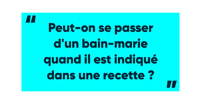 Le principe du bain-marie est de mettre un plat dans un contenant, lui-même placé dans un autre contenant, rempli d’eau chaude. Le but est de maintenir une température douce et constante, ce sont les maitre-mots.