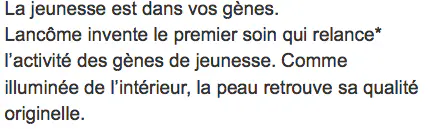 Là où cela devient très étonnant, c'est que l'on retrouve exactement les mêmes allégations sur le site français de Lancôme.