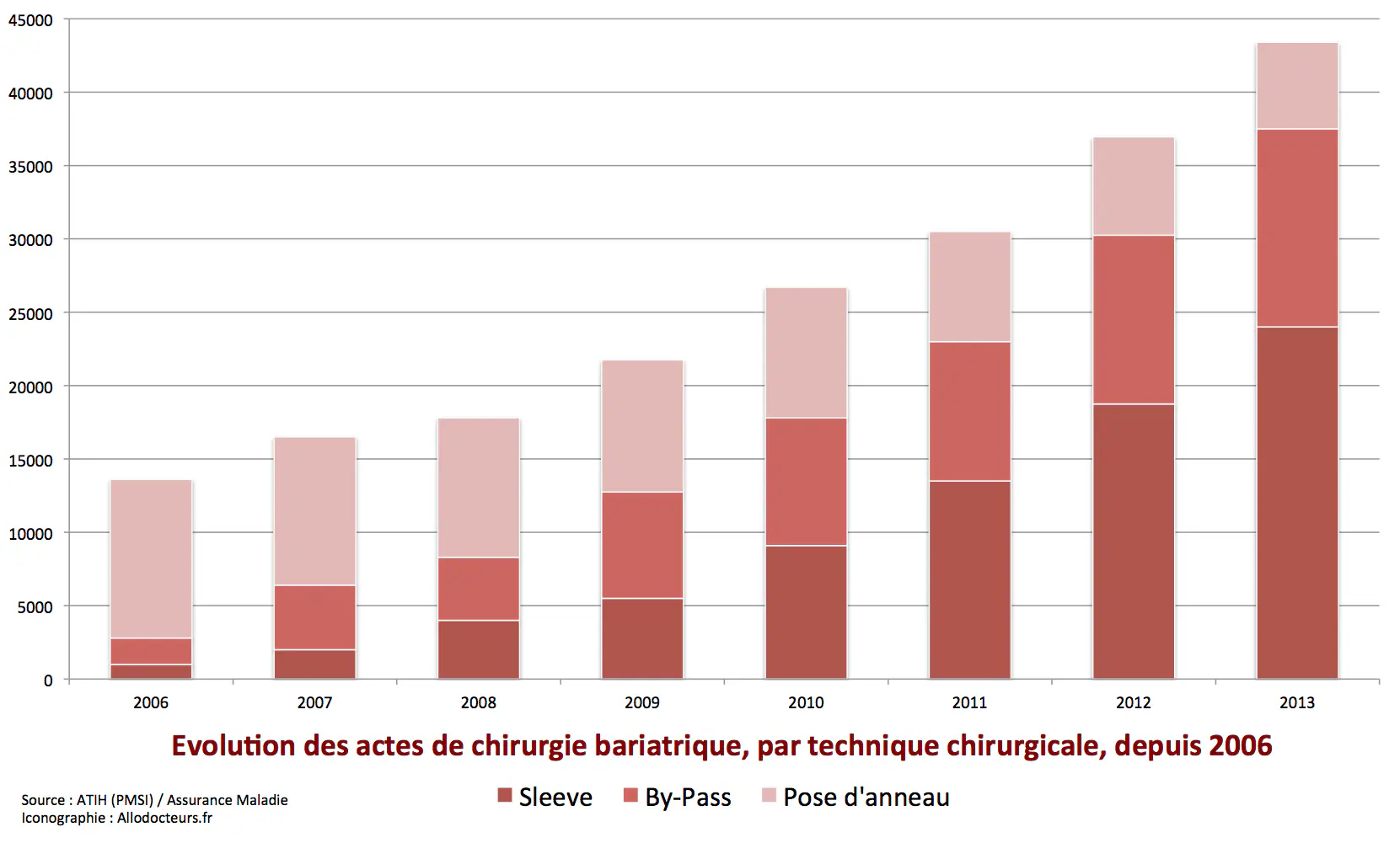 Entre 2006 et 2014 s'est opéré un véritable "boom" des techniques chirurgicales non-réversibles. Comme le rappelait le rapport de l'Assurance maladie en 2013, de nombreuses études soulignent la plus grande efficacité des techniques irréversibles, en termes "d'amélioration, voire de guérison, des différentes comorbidités (en particulier du diabète)", et "d'amélioration de qualité de vie", ce qui pourrait expliquer cet essor.
