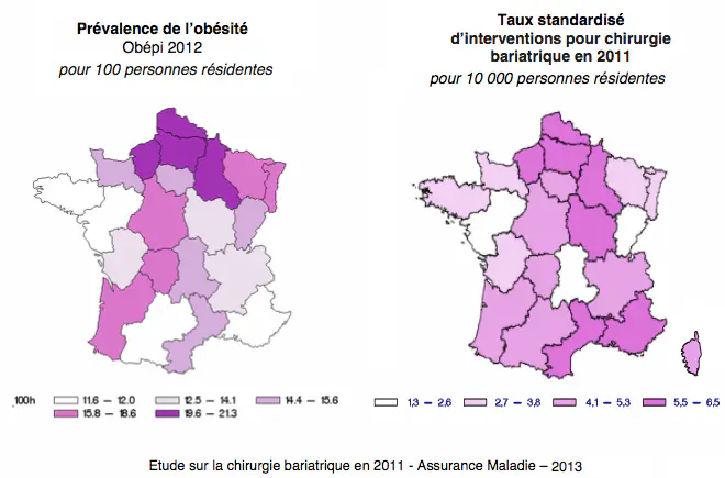 A noter que les régions où la chirurgie bariatrique est la plus pratiquée ne sont pas toujours celle où l'obésité est la plus importante. Ce second fait interroge donc, là encore, "sur la pertinence du recours à la chirurgie bariatrique" sur le territoire.