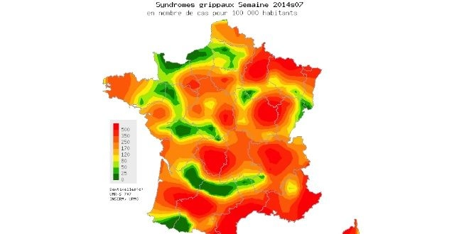 Selon des données conjointes des Grog (Groupes régionaux d'observation de la Grippe) et du réseau Sentinelles - InVS, les consultations pour syndromes grippaux ont atteint 441 pour 100.000 personnes la semaine du 17 février 2014 (235.000 nouveaux cas), contre 375 la semaine précédente.