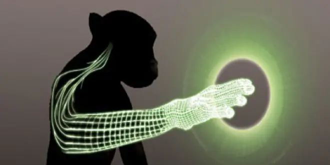 L'expérience réalisée par des scientifiques américains de l'université de Duke consiste à placer dans le cerveau de deux singes un implant. Cet implant, sorte d'interface entre le cerveau et l'ordinateur, permet aux animaux de mouvoir un bras virtuel et de sentir des objets, eux aussi virtuels, uniquement par la pensée. La pensée parvient alors à commander le mouvement sans l'intermédiaire du corps, et peut ainsi diriger une machine.