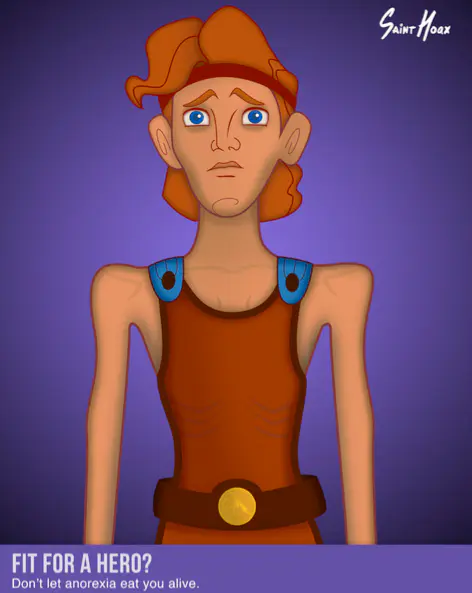 Utiliser Blanche-Neige ou Hercule pour lutter contre l'anorexie infantile. C'est le pari de l'artiste Saint Hoax, qui utilise les héros de Disney pour alerter sur les conséquences de l'anorexie...