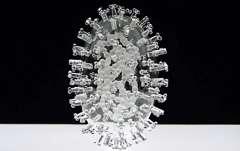 Luke Jerram propose donc une représentation alternative de l'infiniment petit : des sculptures à l'échelle (1.000.000:1) de ces structures biologiques, dépouillées de toute couleur, grâce à l'utilisation du verre. "Les sculptures sont conçues en collaboration avec des virologues de l'Université de Bristol, sur la base de différentes photographies scientifiques et de modèles [utilisés par les biologistes]".