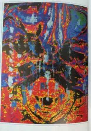 Michel Cymes s'est improvisé peintre amateur, et cela pour la bonne cause. Cette oeuvre de commande n'en est pas moins une œuvre personnelle. D'inspiration médicale…et neurologique. "J'ai réalisé une impression sur toile d'une IRM de cerveau. Par dessus, j'ai peint des éléments qui évoquent les neurones et l'influx nerveux", explique-t-il. "J'ai été conseillé par mon ami Alain Londero, médecin et peintre."