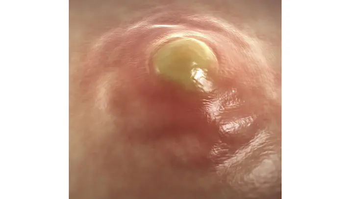 Si au toucher vous sentez que vos boutons fessiers forment des espèces de petites boules, s’ils sont douloureux, c’est très important de les montrer à un médecin. Il va examiner les lésions pour voir s’il s’agit par exemple de furoncles. C’est une complication assez fréquente de la folliculite fessière, quand les cellules d’un follicule pileux se nécrosent cela peut provoquer un furoncle. On ne plaisante pas avec lui car cela peut être très douloureux et c’est souvent dû à une infection bactérienne, notamment le staphylocoque doré. Ne vous amusez pas à triturer le furoncle pour ne pas aggraver les dégâts. Normalement le furoncle sur les fesses va naturellement se mettre à suppurer, c’est-à-dire que du pus jaunâtre va sortir de la lésion. Pour favoriser cette sortie du pus, le médecin vous conseillera peut-être un petit bain d’eau tiède avec antiseptique. Mais surtout un antibiotique, c’est fréquent surtout si le furoncle est proche de cette zone ultra sensible qu’est l’anus, il faut circonscrire et éliminer la bactérie ! Parfois le médecin peut inciser la surface du furoncle pour faciliter l’élimination du pus, c’est un geste délicat. Le message à retenir est de bien observer ses fesses pour surveiller ces boutons mais de ne pas y toucher et de laisser un professionnel s’en charger si c’est nécessaire. Rassurez-vous ils en ont vu d’autres…