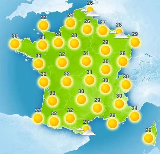 La canicule est un épisode de températures élevées de jour comme de nuit, sur une période prolongée. Dans ces douze départements, les températures seront comprises entre 35 et 38 degrés aujourd'hui et demain. Ils ont été placés en vigilance orange canicule. "Trente-six départements sont, par ailleurs, en vigilance jaune", relève le ministère.