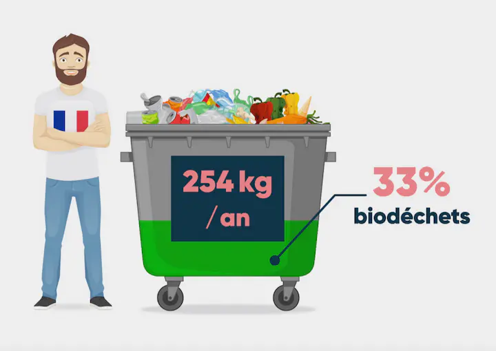 Un Français jette en moyenne 254 kilos d’ordures ménagères résiduelles par an. En vrac, dans la poubelle grise. 33% de ces ordures non triées sont des déchets organiques, principalement alimentaires : des épluchures, des restes de nourriture…