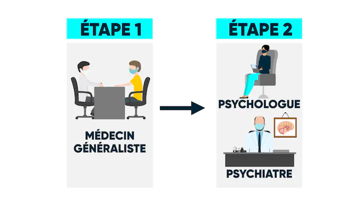 Suite à cette consultation, le généraliste vous prescrira le suivi le plus adapté, soit auprès d’un psychologue, soit auprès d’un psychiatre en fonction de vos besoins. Vous pourrez ensuite choisir ce praticien parmi une liste de psys conventionnés par votre service de santé universitaire.