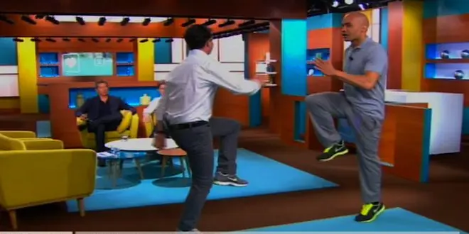 Talons-Fesses : Debout, le corps droit, les bras le long du corps. Expirer en amenant un talon vers le fessier en gardant les deux genoux dans le même axe. Durant l'exécution du mouvement, le buste doit rester droit, les épaules basses et la tête haute. Si vous amenez le talon droit vers le fessier, le bras gauche sera fléchi vers l'avant et le bras droit fléchi vers l'arrière. N'hésitez pas à débuter cet exercice de coordination au ralenti afin de bien intégrer la gestuelle.