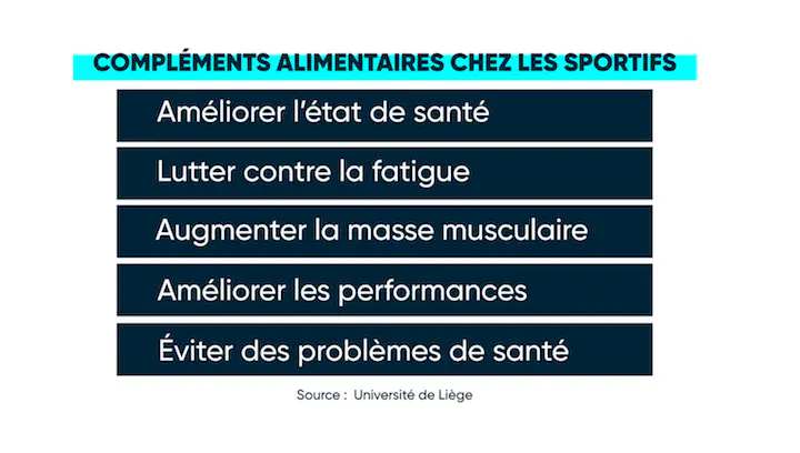 Selon une étude du service de Santé Publique de l’Université de Liège. Près de 30 à 40% des sportifs amateurs fréquentant les clubs de fitness ou joggeurs, prennent des médicaments et/ou des compléments alimentaires sans l’avis d’un médecin.