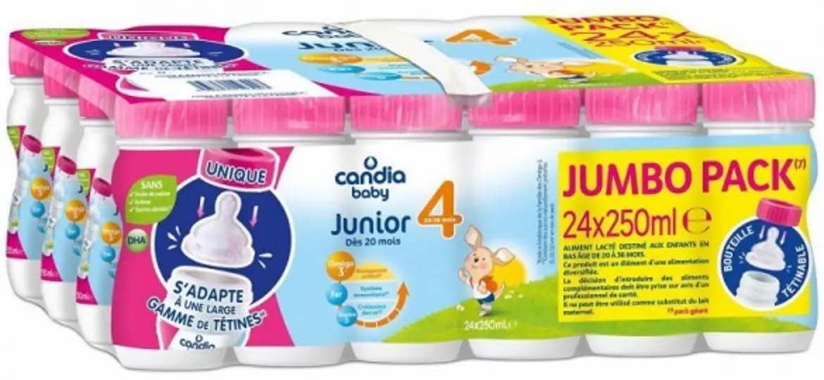 Le rappel consommateur concerne les bouteilles de lait pour bébé "Candia Baby Junior 4 – dès 20 mois" de 250 millilitres vendues en pack de 24 bouteilles. Ce produit est commercialisé dans les enseignes Auchan, Carrefour, Casino, Cora-Match, Intermarché, Leclerc, U de la France entière depuis le 22/07/2022.