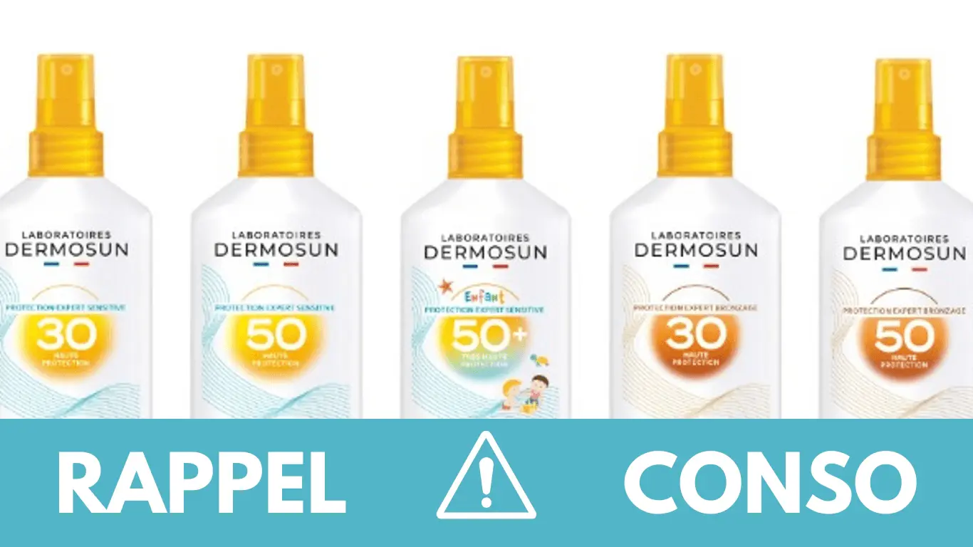 - Spray Expert Sensitive 30, Spray Expert Sensitive 50, Spray Expert Bronzage 30, Spray Expert Bronzage 50, Spray Expert Sensitive 50+ Enfants, Crème visage Expert Sensitive 50, Spray Expert Sensitive 50 Voyage de la marque LABORATOIRES DERMOSUN. Ils ont été commercialisés dans les pharmacies de France entière du 10/03/2024 au 21/05/2025.