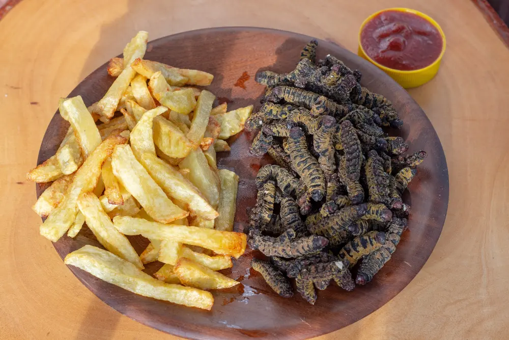 La consommation de chenilles est particulièrement profuse en Afrique subsaharienne, où 30 pour cent de toutes les espèces d’insectes comestibles sont des larves riches en protéines, en fer et en oméga 3. Généralement, elles sont vendues séchées, vivantes ou bouillies, dans des casseroles, des sacs ou dressées en pyramide sur les étals en bois vieilli ou à même le sol. Et c'est sans doute la chenille mopane, dont le nom scientifique est Imbrasia belina, qui est la plus appréciée sur le continent.