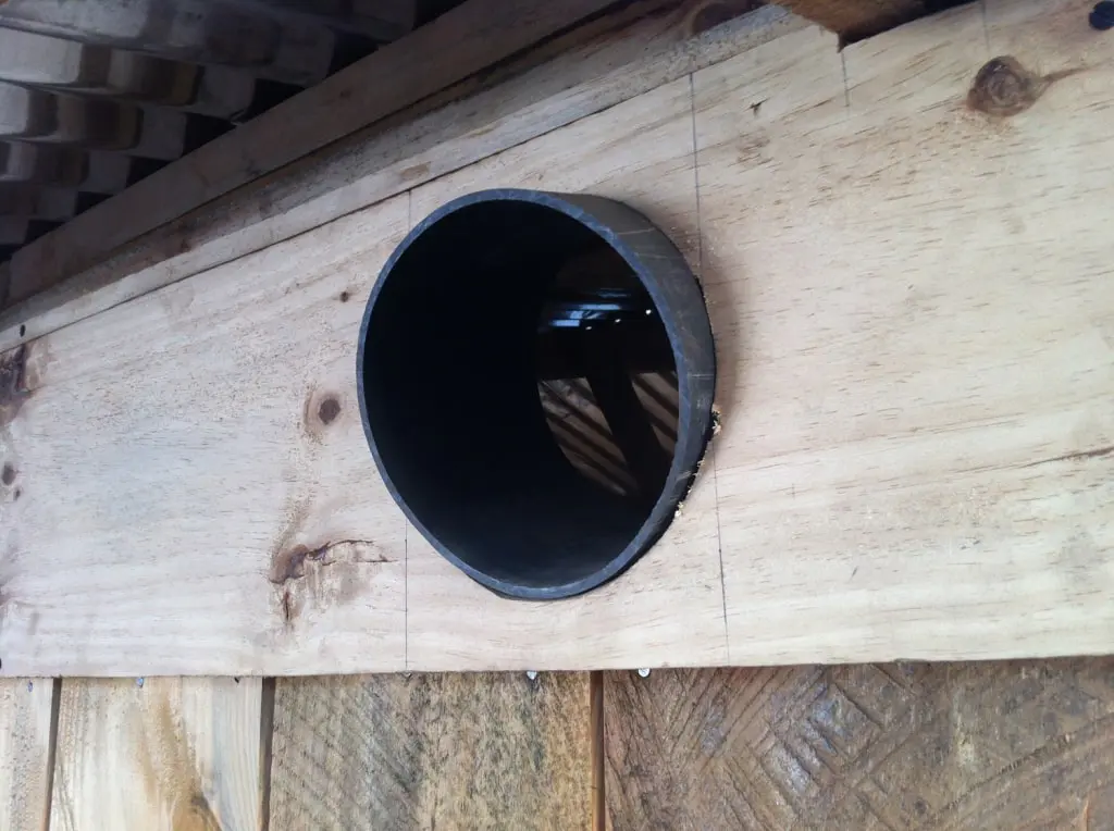 Ce piège qui ressemble à un tube est capable d'exploiter la préférence des moustiques du genre Anopheles à se faufiler par le petit espace qui sépare le toit des murs. Comme il y a un flux d'air qui passe à travers du Eave Tube, il attire les moustiques avec les odeurs humaines venant de l'intérieur de la maison. Par la suite, les moustiques sont bloqués et tués par un grillage traité avec des insecticides spéciaux, lorsqu'ils essaient d'entrer dans la maison par le tube.