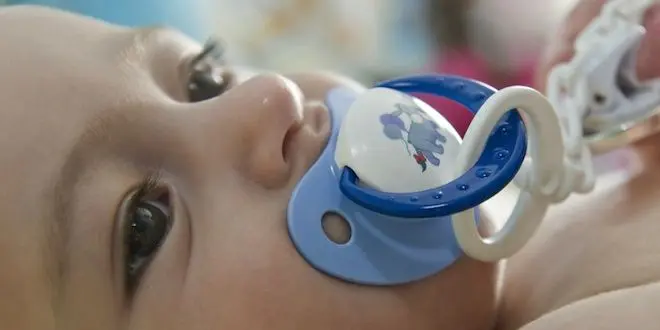 "Quoiqu'il en soit, les arguments en faveur d'un arrêt précoce de la tétine ou du pouce sont nombreux : ils déforment le palais, pouvant rendre nécessaire le port ultérieur d'un appareil, et augmentent très nettement le risque d'otite."