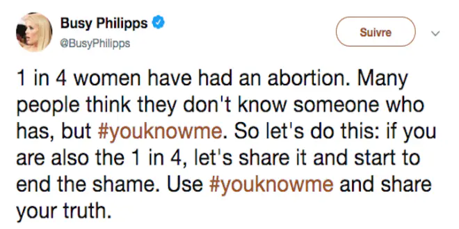 Le Hashtag de l'actrice #YouKnowMe est rapidement devenue viral : des centaines de femmes ont commencé à partager leurs histoires d’avortement.
