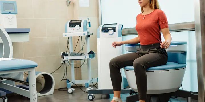 "En pratique, il s'agit d'un fauteuil sur lequel s'assoit la patiente habillée, et qui est relié à une machine", précise le Dr Coutant-Foulc, dermatologue spécialiste des pathologies vulvaires et qui propose la machine Emsella à ses patientes. L'appareil envoie des ondes électromagnétiques à haute intensité et focalisées, qui agissent directement sur les muscles du périnée.