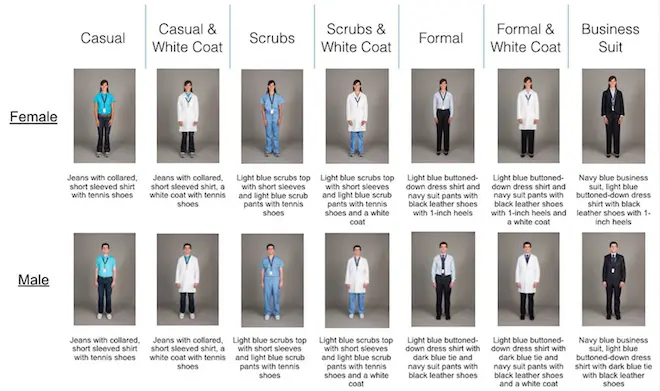 Ces travaux ont été menés auprès de 4062 patients dans dix hôpitaux universitaires américains. Ils ont tous reçus un questionnaire avec des photos de praticiens dans des tenues diverses et variées : tenue formelle ou décontractée avec ou sans blouse, costume-cravate, pyjama de bloc opératoire… Ils devaient ensuite évaluer ces clichés en fonction du sentiment que leur inspirait chaque soignant : bienveillance, sérieux, confiance, accessibilité, savoir… Résultat : la blouse blanche est la tenue préférée des patients qui se rendent à l’hôpital.