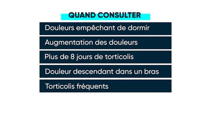 Tous ces signes laissent à penser qu’il ne s’agit pas d’un simple torticolis, c’est-à-dire d’une contracture isolée des muscles du coup, mais qu’il existe une lésion associée au niveau d’une vertèbre, d’un disque intervertébral ou d’un nerf.