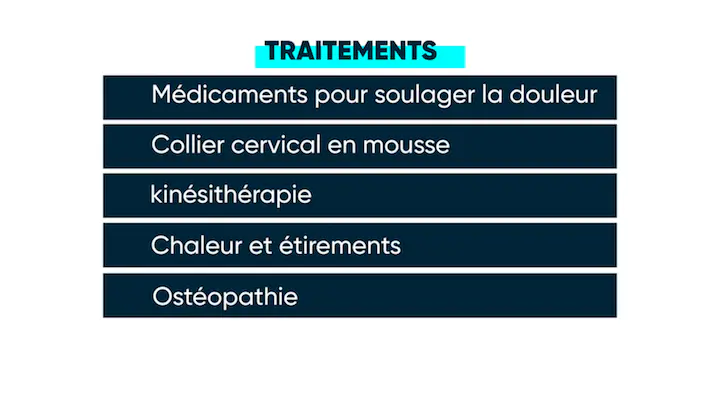 Il est important que l’ostéopathe le sache pour adapter sa technique de traitement. La règlementation oblige normalement ce praticien à disposer d’une ordonnance ou certificat médical pour manipuler le rachis cervical. Quand le bilan lésionnel et diagnostic est bien effectué, les techniques manuelles sont très efficaces pour soulager ces contractures.
