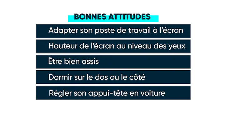 Adoptez des attitudes de la tête et du cou appropriées dans les tâches quotidiennes :