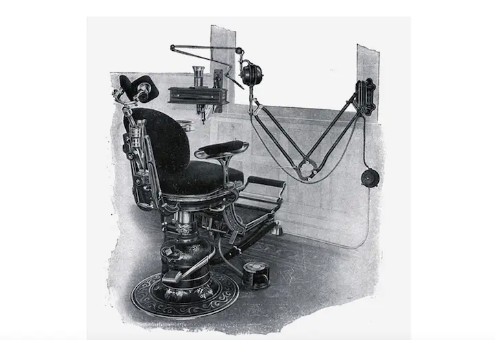 Les premières installations modernes font leur apparition dans les cabinets. Le moteur est fixé au mur et un bras articulé permet de manier facilement la turbine.