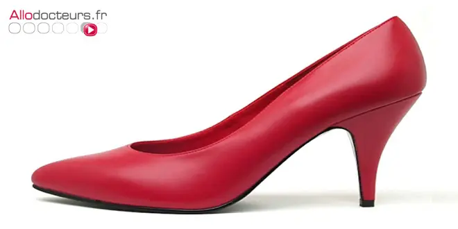 Le Dr Goldcher note que certains modèles de chaussures favorisent la compression de l’avant-pied, comme les escarpins, les ballerines, les zoccoli (qui n’ont pas d’attaches modulables), les sabots, les mules (qui n’ont pas d’attache au talon) ou les bottines cavalières, les mocassins ou les loafers (qui n’ont pas d’attache adaptable à la morphologie du pied, ou de façon limitée).