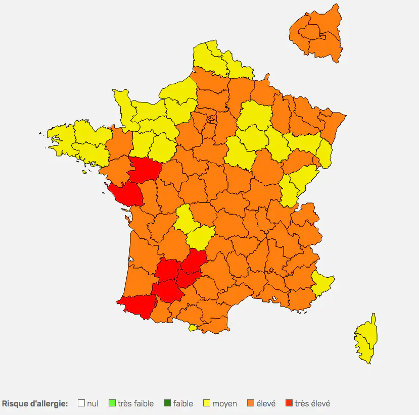 A l’origine de cette flambée du risque à l’échelle du pays : des températures élevées, dépassant parfois les 30 degrés et l’absence de pluie, qui forment "des conditions météorologiques très favorables à la dispersion de fortes concentrations de pollens dans l’air", précise le RNSA.