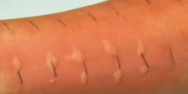 C'est le mécanisme classique de l'allergie (libération d'histamine et réaction de la peau) des allergies. Il faut éviter d'être recousu avec ce genre de fil désormais.