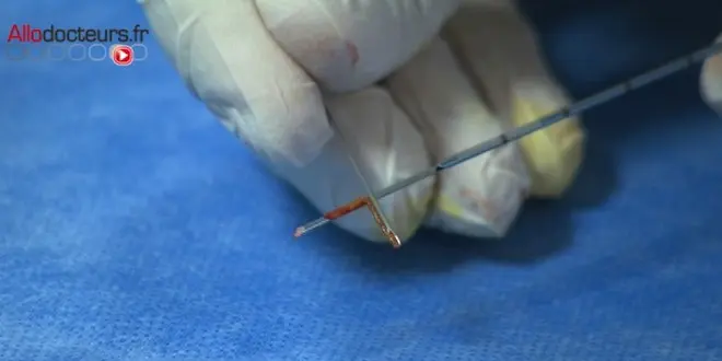 Le radiologue commence par prélever du tissu de foie sain, et va ensuite ponctionner les tumeurs. "Pour savoir s'il s'agit d'une tumeur primitive du foie ou d'une tumeur métastatique, le prélèvement de la tumeur est important mais aussi le prélèvement du foie sous jacent pour voir s'il y a des facteurs prédisposants au développement d'une tumeur primitive", explique le Dr Frédéric Deschamps, radiologue interventionnel.