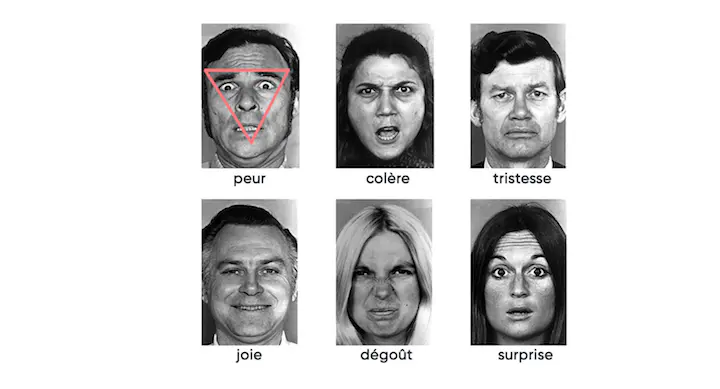 À l’état normal, pour communiquer et interagir, nous bénéficions d’un grand nombre d’informations sur les émotions faciales qui proviennent d’un triangle formé par les yeux et la bouche. Ce qu’on ne sait pas, c’est que la plupart du temps, à l’état normal, sans en avoir conscience, on perçoit, on traite et on imite même ces émotions faciales, de manière imperceptible.