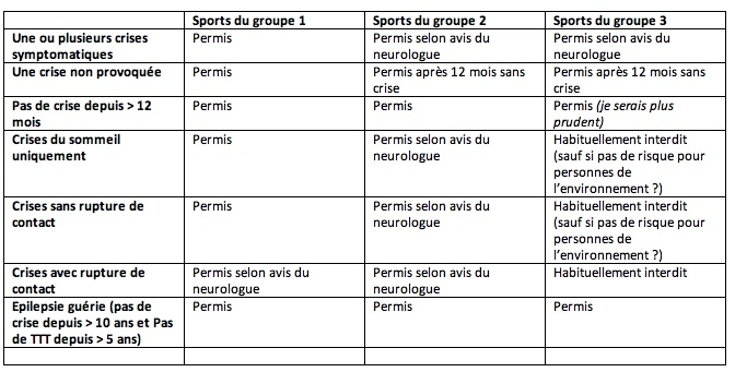 Recommandations officielles de la Ligue internationale contre l'épilepsie (ILAE) en vue de la pratique du sport :