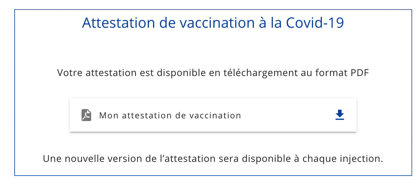 Toutes les personnes vaccinées après le 3 mai 2021 se sont vu remettre ce document par le personnel soignant qui a effectué l’injection. Mais si vous l’avez égaré ou que vous avez été vaccinés avant le 3 mai, vous pouvez désormais l’obtenir en ligne, sur un site créé par l’Assurance maladie : attestation-vaccin.ameli.fr.