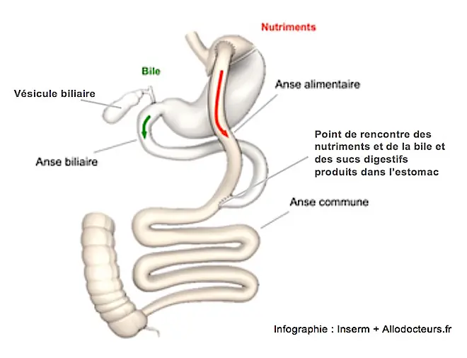 En cas de by-pass gastrique, le mélange de bile et de sucs digestifs n’interagit avec le glucose qu’au niveau du point de raccord avec l’intestin.