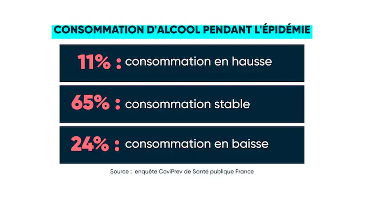 Un quart environ a donc réduit sa consommation d'alcool. Il faut probablement considérer la modification de l’accès et des occasions : fermeture des bars, des restaurants, des salles de concerts, l’annulation des festivals, la limitation des rencontres et des visites, parfois des courses.