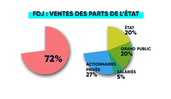 Jusqu’à présent, l’Etat contrôlait 72% de la FDJ, c’était donc l’actionnaire majoritaire et son pouvoir décisionnaire était fort. Il ne détiendra bientôt plus que 20% : 20 % des parts ont déjà été vendues au grand public, 5 % aux salariés et le reste va être vendu à des gros actionnaires privés institutionnels.