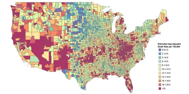 Source : CDC/NCHS, National Vital Statistics System. Crédits : L. Rossen, B. Bastian & Y. Chong.