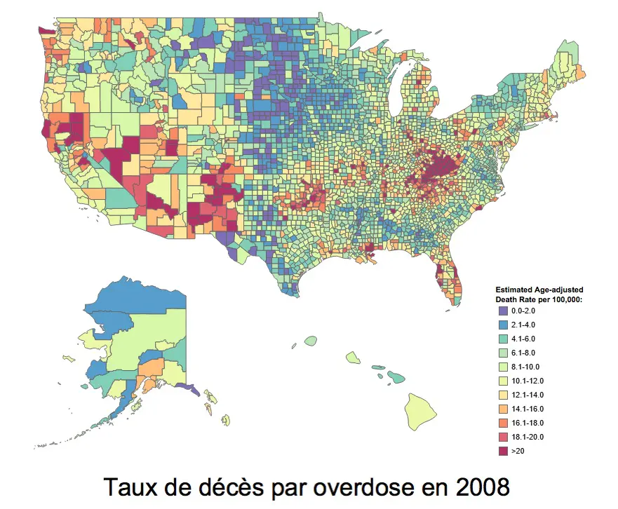 Entre 2000 et 2014, les overdoses ont coûté la vie à près d'un demi-million de personnes aux Etats-Unis tandis que le taux d'overdoses par opiacés a triplé.