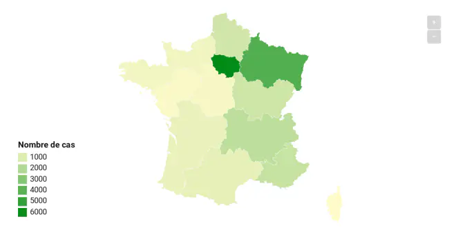 En 24h, les autorités ont enregistré 186 décès et près de 4000 cas supplémentaires. Comme le montre notre carte, c’est un millier de cas supplémentaires en Ile-de-France.