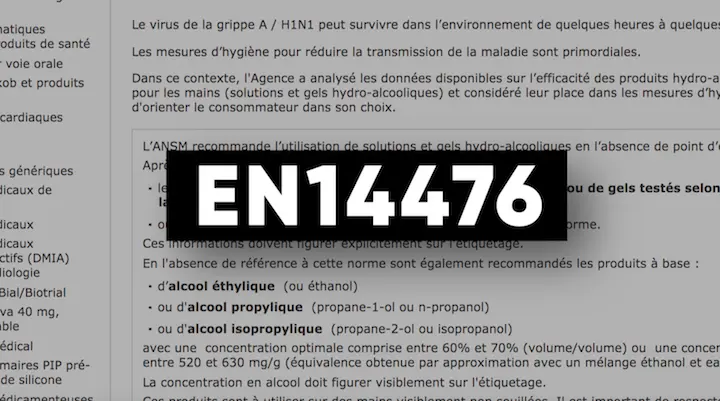Autre élément important à vérifier, la norme EN14476. Elle vous garantit que l'action virucide du produit a bien été testée. Cette norme a été définie en 2009 par l’ANSM dans une recommandation concernant à l’époque la grippe H1N1. Elle est aussi valable pour le coronavirus.